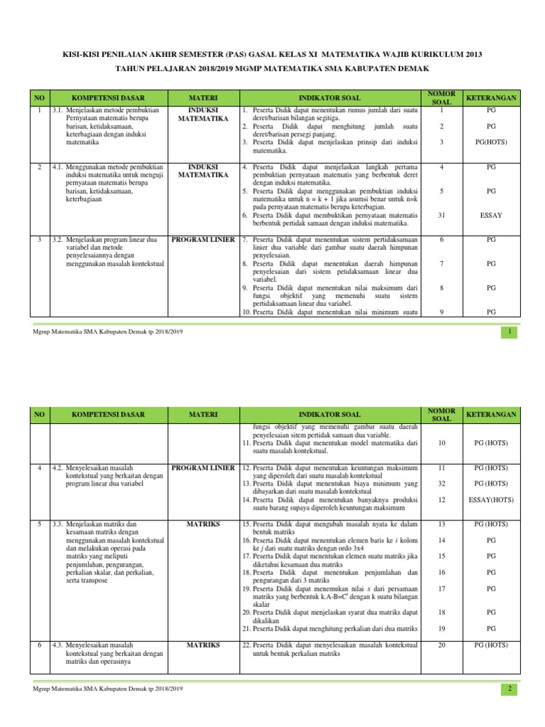 Kisi Kisi Pat Matematika Wajib Kelas 10 Terbaru Panduandapodik Id from 3.bp.blogspot.com Soal matematika wajib kelas 11 semester 2 dan pembahasannya … Ujian resmi pertama yang akan sobat hadapi adalah pts / uts. Pelajari materi latihan soal dan pembahasan matematika wajib sma kelas 11. Program linear merupakan sebuah metode yang digunakan untuk mencari nilai optimum maksimumminimum dari suatu fungsi tujuan atau fungsi objektif yang memiliki kendala tertentu. Demikian kumpulan soal matematika kelas 4 sd semester 1 dan 2 dilengkapi dengan kunci jawaban. Download kisi kisi soal pat matematika wajib kelas 11 tahun 2021. Soal matematika wajib kelas 11 program linear. Lim(𝑥 2 − 4x) =.