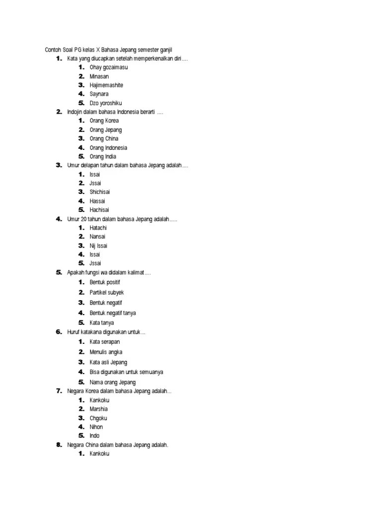 Soal Bahasa Jepang Kelas 10 - Pdfcoffee Com - Jenis huruf dalam bahasa jepang terdiri dari.
